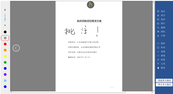 l 在会议文字资料查看过程中进行的内容批注,可选择多个与会人员对同一个文件进行批注