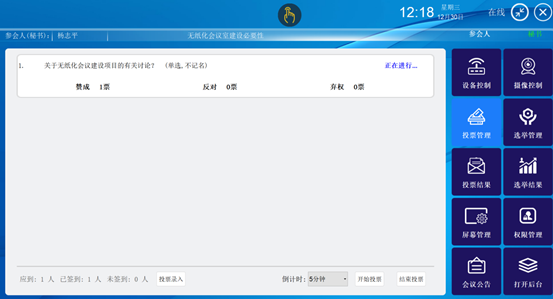 无纸化会议系统由软件和硬件组合搭配,软件运行在升降一体机内,具有会议管理平台,整合多样会议模式涉及的各个环节。可提供会前上传议题资料,人员安排,签到投票,个人会议纪要,电子白板,会议交流等多方面功能的实现。协助管理员对整个会议流程进行高效便捷的控制,构建各国与会人之间的有效技术交流,从而保证会商交流效果的高效体现、提高执行力度。