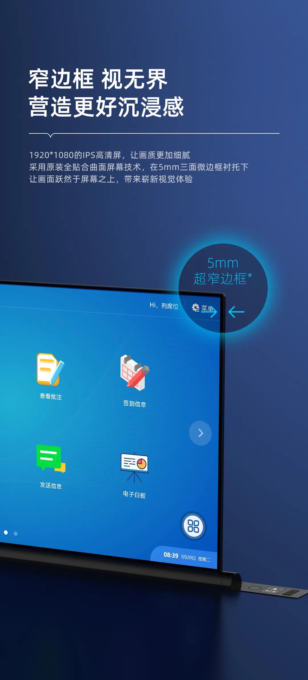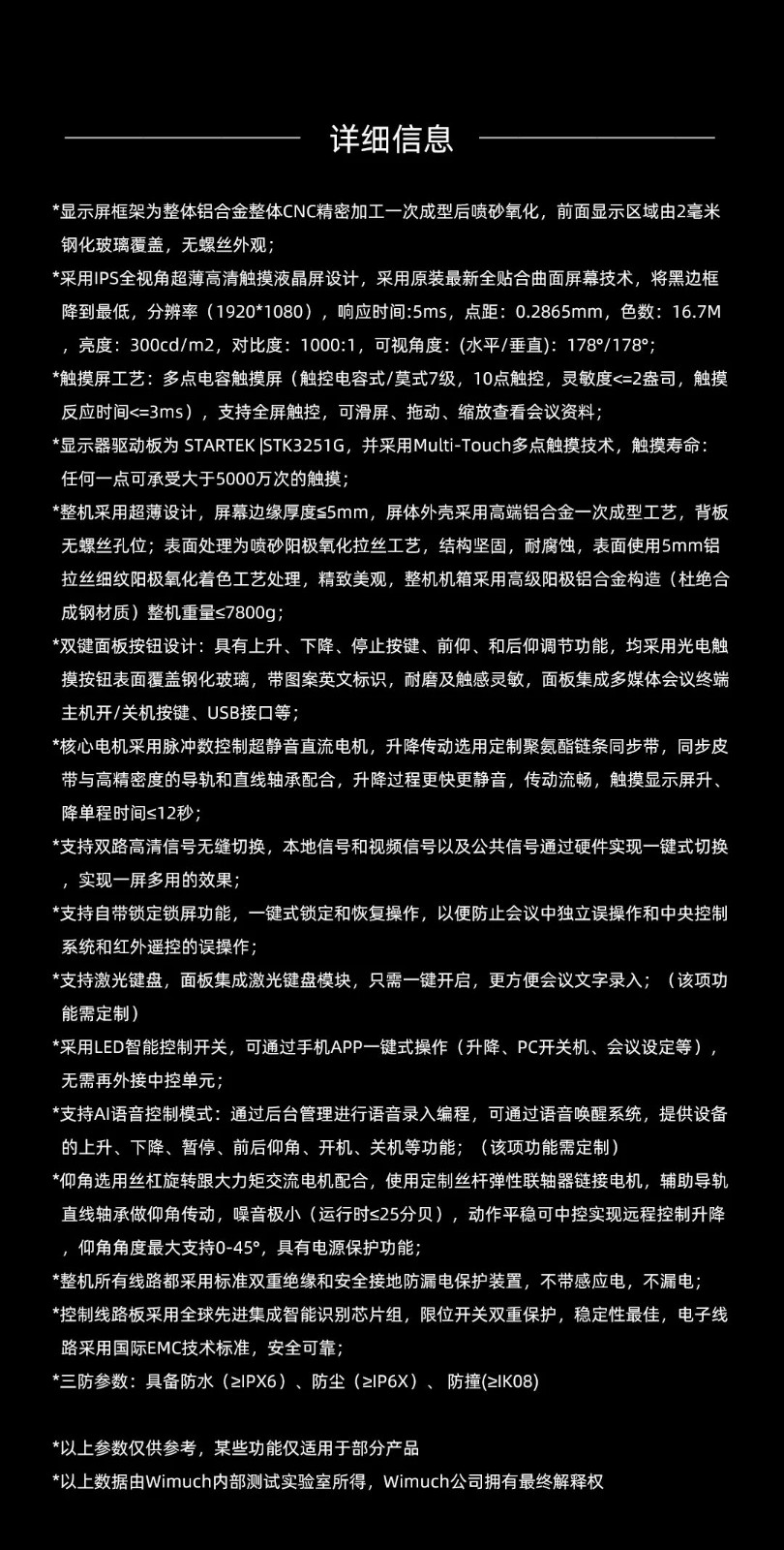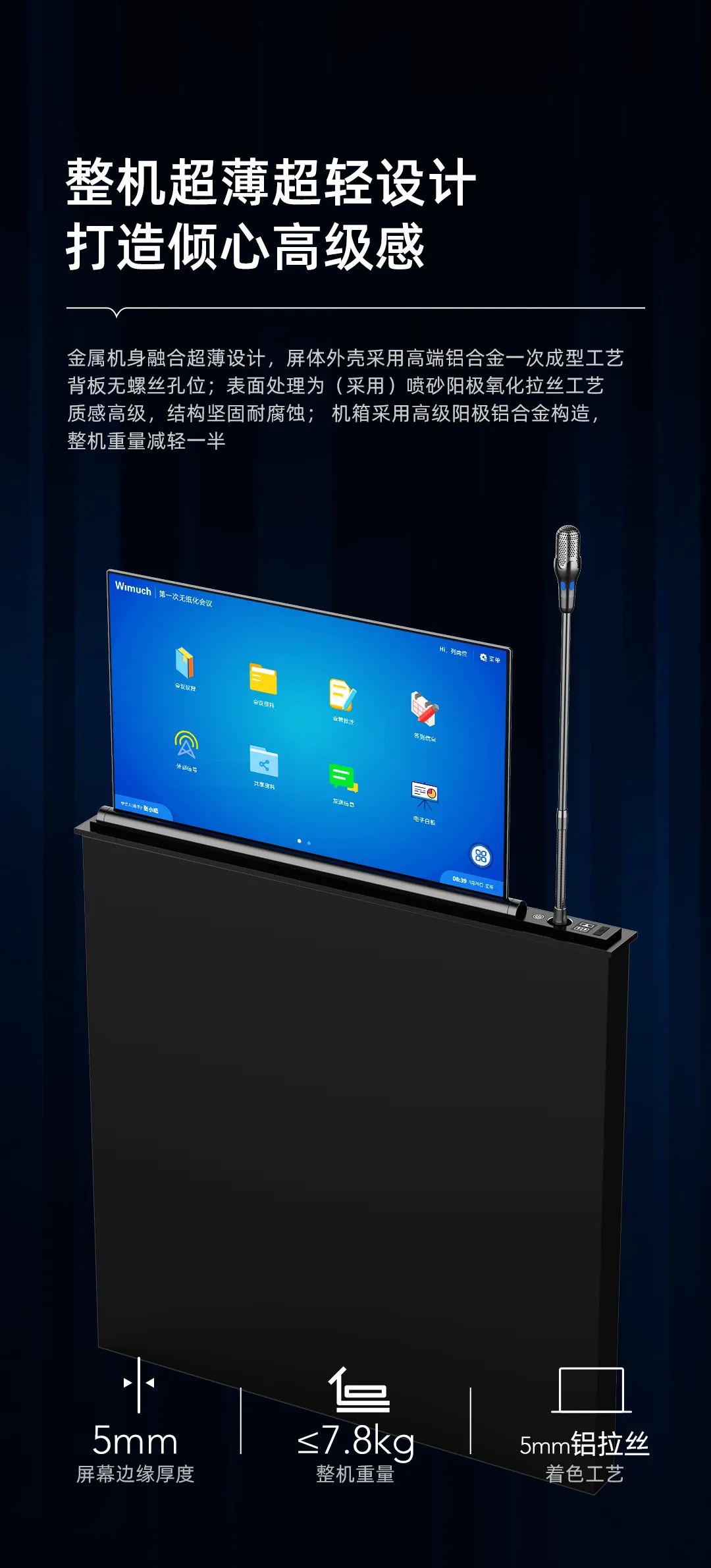 新一代威数智能STIM系列全贴合无边式无纸化会议终端升降屏