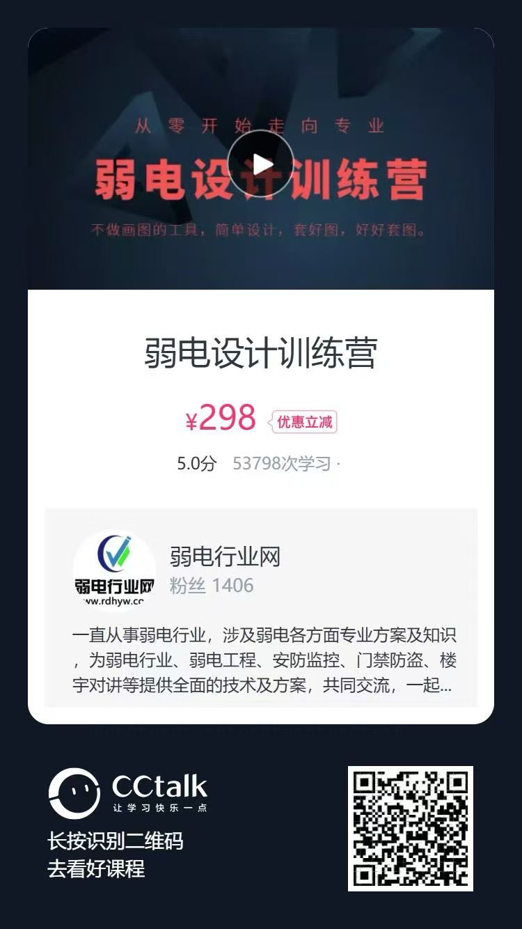 首先懂设计是弱电人走向核心技术的基础,这里面推荐一门课程-《弱电设计训练营》,建议项目经理必会,增加项目成交机会。