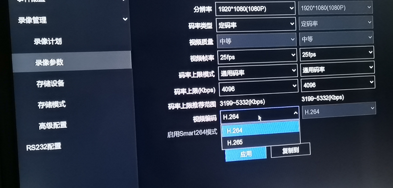 是录像机支持264/265,但是前端不知道支不支持,所以是默认264,现在的前端大部分都支持h.265,极少不支持的,可以检查下摄像机。