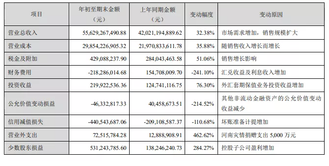 前三季度累计实现营收556.29亿元,同比增长32.38%;归属于上市公司股东的净利润为109.66亿元,同比增长29.94%。