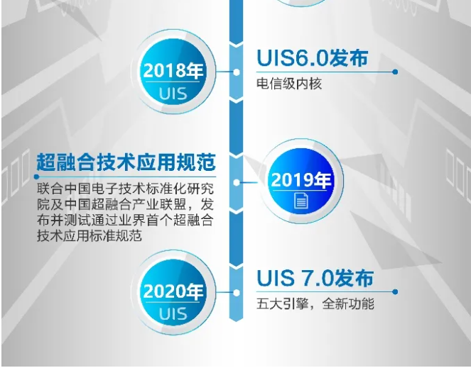 作为业界卓越的超融合产品,新华三集团UIS超融合伴随着多年的技术迭代和多场景应用,如今已经具备承载多场景关键业务的能力。回看新华三超融合产品的发展历程,早在2011年新华三即展开布局,于2013年正式发布UIS 1.0,率先推出一箱即云超融合解决方案;2015年发布的UIS 3.0,更带来了计算、存储、网络、安全四维一体化SDDC解决方案。2020年,新华三全新推出了UIS 7.0,并创新性地集成全运行态引擎、赤霄加速引擎、多角色集群引擎、混合云引擎和智能边缘云引擎五大核心引擎,不仅引领超融合进入云智原生时代,还为转型中的百行百业提供高效、节能、灵活、可靠、智能五大价值: