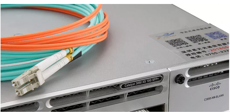 要使用交换机上万兆光口,需要插上SFP+万兆光模块,万兆双芯光模块(双芯最常用,一收一发)会有两个LC接口。