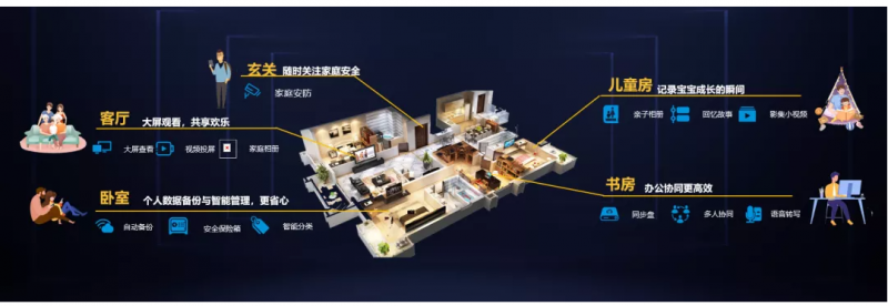 比如,家庭成员随手拍摄的照片,通过上传和彩云家庭云,全家实现跨地域跨屏的共享,让“爱”远程相伴。此外,和彩云还实现大中小多屏互动,支持大屏展示、智能分类、家庭回忆、电子相册四大核心功能,让家庭生活温情满满。