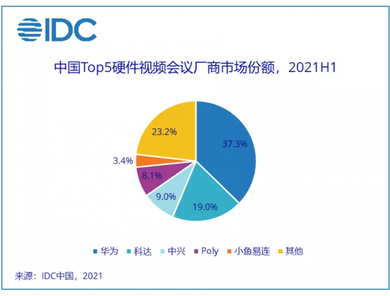 20.8亿元,2021 H1 中国 Top 5 硬件视频会议市场:华为、科达、中兴、Poly、小鱼易连