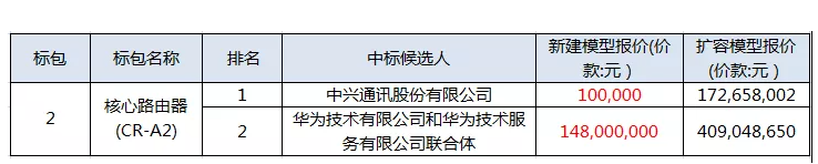 电信核心路由器集采,中兴报价10万,华为报价1.48亿?