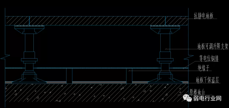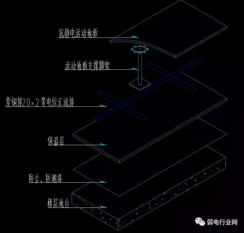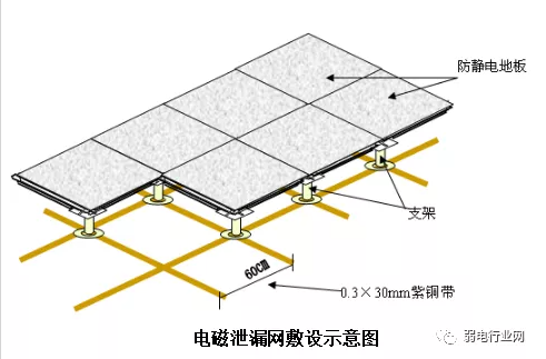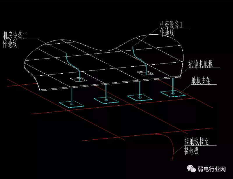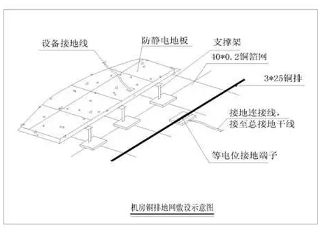地面接地网、活动地板的钢质支架用编织软铜线相互连接,再与接地汇集排联成一体,由此形成一个等电位的法拉第笼,使机房内的设备免受雷击的侵害。