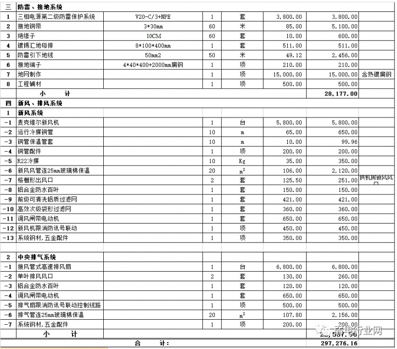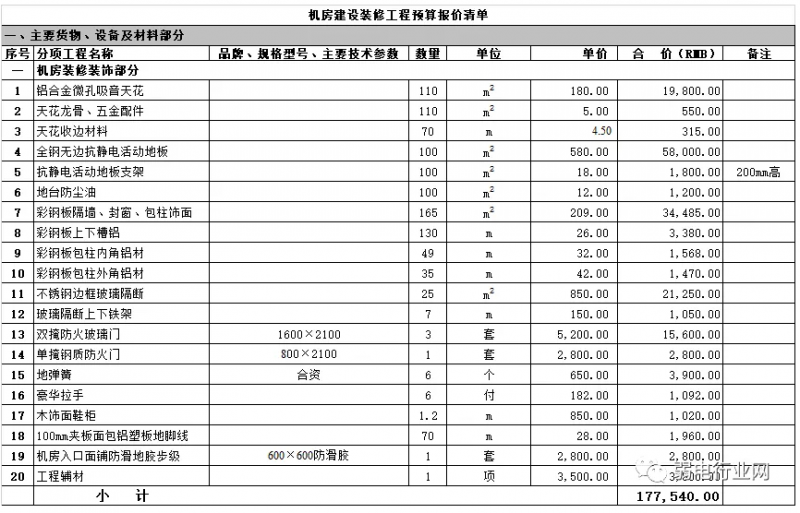 机房建设装修清单