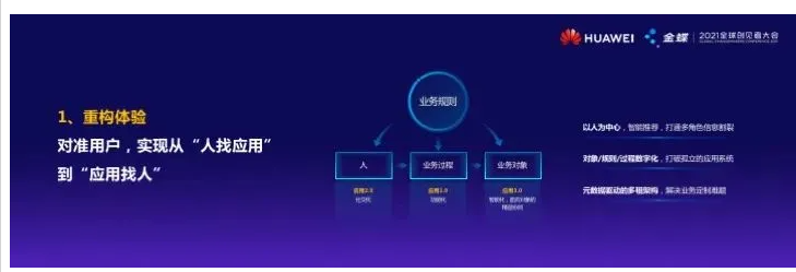 非常荣幸有这个机会来到金蝶的全球创见者大会,也非常感谢金蝶在华为的数字化转型过程中,对华为的支持。今天和大家分享的主题是《深耕数字化,共建面向未来的高质量竞争力》。在疫情和中美的冲突双重压力下,让我们在高速发展的过程中,可以有更多的思考,看到了我们的发展短板在哪里,意识到了我们的问题在哪里。现在数字化转型,是解决企业面向未来构建高质量竞争力的重要发展方向,要看数字技术的根能扎多深,要把关键环节的问题解决掉。数字化转型的目的是支撑主业成功。华为所有的变革不是为了建造一个世界级的IT,而是要面向未来构建一个世界级的华为。现在很多的企业数字化转型或数字化,并不是业务战略驱动的。战略引领是发挥数字化价值的基础,构建高质量的企业竞争力是数字化转型的基础。要从业务场景出发,提升用户体验,重构业务的流程,重新规划业务的路径。在数字化的过程中,要重视数据的价值,要打造统一的数据平台,进行有效的数据治理,挖掘数据的价值,因为数据是企业这台机器里的最大效率变量。同时,要构建相应的数字化的保障体系,包括人、组织、能力,是数字化转型的关键。要致富先修路。我们从2016年开始做数字化转型,到今年是第5个年头。我们是从三个层面,来推动公司的数字化。一是面向对象的精益协同,对准用户体验的提升,面向具体的业务场景,实现三个重构(重构体验、重构流程、重构运营);二是跟金蝶等业界合作伙伴共同打造智能企业所需要的数字平台,这个平台就是数字化操作系统,企业数字化后就像一台电脑,这个操作系统对上是连着所有企业的应用,对下应该能管理到企业所有的外设或者是各种资源。通过建设数字化的平台能力,释放企业数字化的战斗力,加速企业数字化的进程;三是积极推进先进的基础设施的建设。我们通过三个数字化,开展三个重构,实现面向对象的精益协同。面向对象的精益协同,既有数字化时代的概念,又有工业时代里最精髓的概念(精益)。什么叫面向对象的精益协同?就是从人找应用到应用找人,我认为这是最佳的用户体验的感觉,当要用的时候,它恰如其时的出现,而且是零等待,精益是什么概念?是工业时代的零库存的概念。要达成面向对象精益协同,需要重构体验,重构流程和重构运营。重构体验。我将传统的ERP、PDM等叫做应用1.0,这些应用是面向功能做的,是功能化的服务,关心各项功能的实现,也是一个个分散的能力。什么是应用2.0时代呢?就是围绕着人做的应用,像现在的社交化的应用,更多是面向个人的应用。我们认为应用3.0的时代,是智能化的面向对象精益协同。是针对企业里的人,在处理企业业务的场景中,需要哪些功能和活动,操作一个什么样的物项,要达到零等待、恰如其分。我们原来需要打开Word写文档,进入电子流处理业务,这些都是人找应用。现在能不能回到我的作业场景中,以人为中心,实现智能的推荐,不是简单的知识的推荐,你最需要的是什么业务活动和业务服务,通过消息、语音、视频就推送到你面前,你只需要确定你的判断,业务就继续执行。要实现这种应用模式,要将业务的对象、规则和过程等都进行数字化,打破原来孤立的功能型的应用模式。我们用了30年的ERP,现在被停止供货、停止技术支持,被迫进行重构,虽然难度很大。传统的应用架构,单体的ERP其实也不太适合这个时代,但不是说要丢掉资源协同管理和计划的精髓,我们是在重构的过程中基于企业的场景,打破孤立的系统,想要走到应用的3.0时代。在这个过程中,我们也采用元数据驱动的多租户,来实现快速的复制。重构业务流程,改变业务的作业方式。我们原来的业务作业,都是按照既定的流程,比如说设计、制造、运维,每一个领域的流程,流程与流程不通,功能有断点,效率就不高。我们要充分深入到业务场景中,真正的从全流程的用户体验角度、全场景的用户体验角度来设计业务的流转。“任何不涉及流程重构的数字化转型都是装样子”,是在外围打转转,没有触及灵魂。我觉得这样的数字化转型也不可能成功,真正的成功一定会对企业的效率带来10倍级以上的加速,打破原来流程的边界。重构运营,就是发挥数据的价值。我们原来的信息系统,所谓的运营和运维,其实就是报告的系统。现在我们要建一个实时反馈系统,一定要做到作业即数据,然后应用先进算力+算法,快速让这些数据发挥作用,能够不光是在事后的统计报告发挥价值,而且可以在预测、分析、过程的干预和事后的回溯,全过程更加充分的发挥价值,发挥业务最大的运行效率。华为也一直在这方面做积极的探索,这三年我们在很辛苦的做一件事,就是前面提到的ERP重构。我们分三步走,第一步是维稳,第二步是解耦,第三步是换新,现在已经走到了第三步。这东西是我买来的,无论有没有服务,无论有没有支持,都要保证手里面的东西能够用;再想办法通过三个重构对它进行改造,同时将多年积累的业务经验从原来的系统中拆解出来,放到新的平台中来。看看这个事情,希望我们5年能够做成。我们讲升级数字化转型的基础设施,使用云技术,加上新型的装备+智能,以及软件定义的调度来实现等距服务。我认为任何一个企业,应该有一个业务的地图,无论是在天涯海角的机构,还是在身边的机构,我认为未来的基础设施和数字的世界,应该要消灭