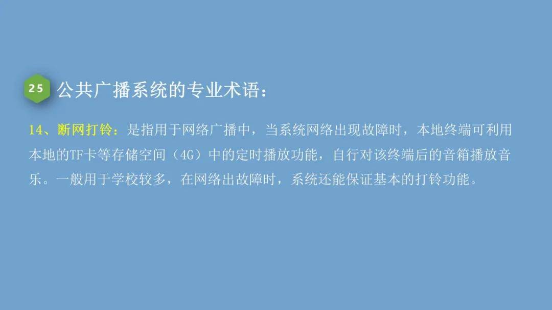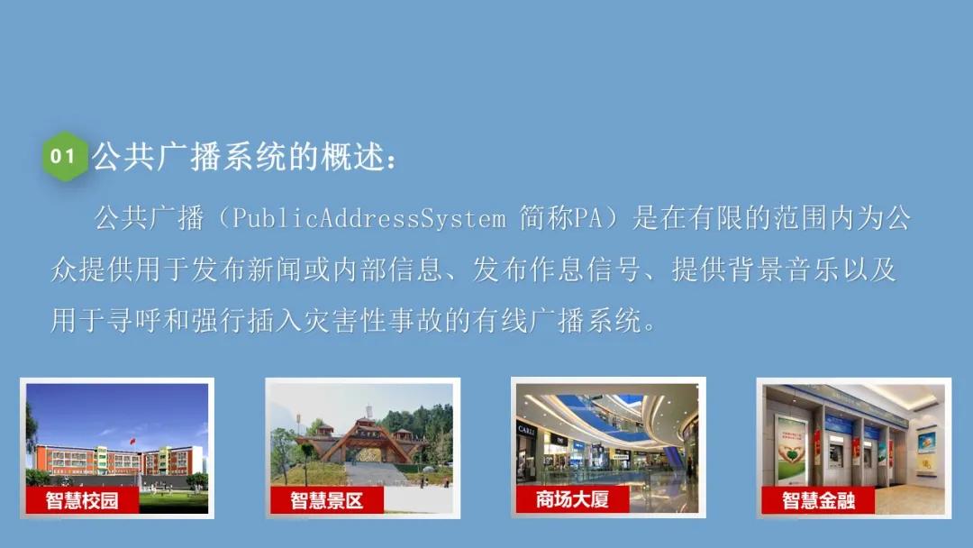 公共广播(PublicAddressSystem 简称PA)是在有限的范围内为公众提供用于发布新闻或内部信息、发布作息信号、提供背景音乐以及用于寻呼和强行插入灾害性事故的有线广播系统。。