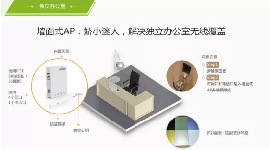 ● 安装简单:仅需两步,就可完成墙面式AP的布放