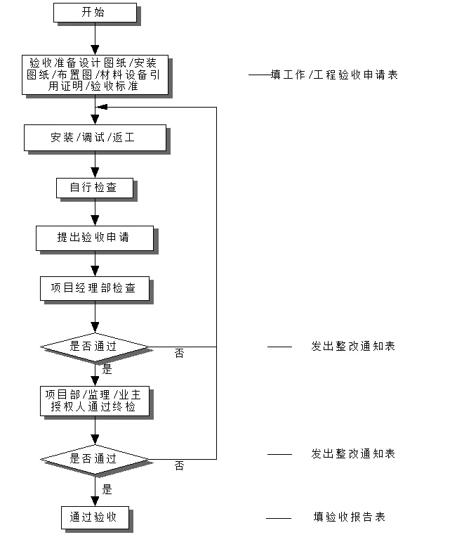 工程在某阶段工程结束,或某一分项工程完工后,由项目部会同业主、监理和顾问进行分项工程验收。综合布线安装工程项目完成后,要严格按照有关的质量标准、规程、规范进行交接试验,试运转和联动试运行等各项工作,并做好签证验收记录,归入工程技术档案。分项验收后,其总系统或工程仍须通过验收,方为完成。