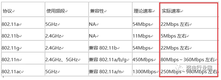 虽然很多AP的无线速率有450Mbps、600Mbps、750Mbps、1167Mbps,但实际上是达不到这些的,具体可以看下面列表。
