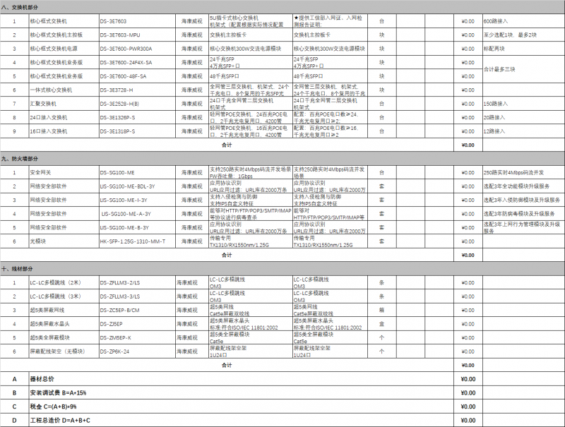 主要是设备涉及到这三部分,我们以100平方的机房配置清单为例: