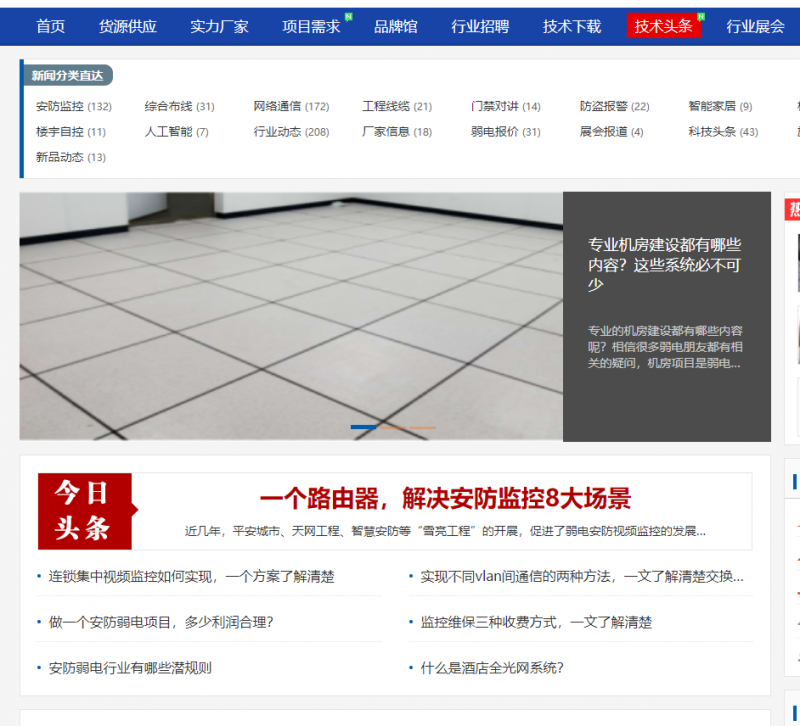 一、通过弱电行业网技术头条可以查看