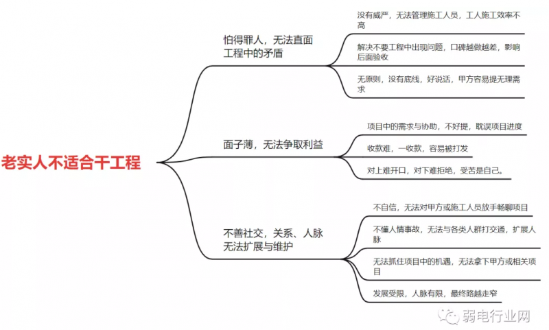 包工程后手底下要管理的人很多,什么样的都有,作为领头人就应该有威严。可老实人一般不敢得罪人,也不懂得什么手段,拿不出魄力,怎么管理工人?管理不了工人,那项目就没法进行,造成了项目质量、或者进度难做的局面。