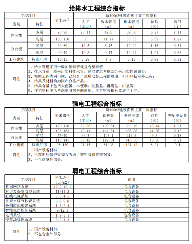 这里面我们重点来看下弱电项目按平方来报价的,弱电最常见的住宅的报价,弱电住宅小区70-150左右一平方的都有的,这个主要是各小区的弱电系统不一样与档次不一样,所以造成了造价有不同,所以我们在做项目时需要注意。
