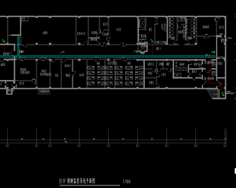 监控项目平面图除了有一些线缆的连接,最重要的就是有监控点位分布,在上图中我们可以明显看到有几个监控点位图标,其中就是点位分布,点了点位,还有一些大楼的格局,用平面图的方式反映出大楼的情况,很直接,在施工时比较直观。