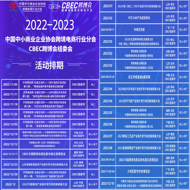 为更好地服务广大参会代表及分会会员企业,推动跨境电商行业深层次、多方位、多元化的交流与合作,大会组委会将定期举办“外贸新趋势·出海正当时”CBEC系列线上直播活动、“局势赋能·品牌出海”跨境电商生态创新峰会线下论坛,以及走进产业带赋能活动,为跨境电商行业发展注入全新动能与活力。