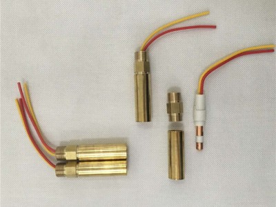 高温小型中频炉用KW-602测温枪头 采用相应型号补偿导线正负极,采用高新焊接技术引出导线,不用锡焊,排除第三组元,以提高测温精度。绝缘部分采用高分子材料,耐热度高,并采用一体化注塑,定位精度高。