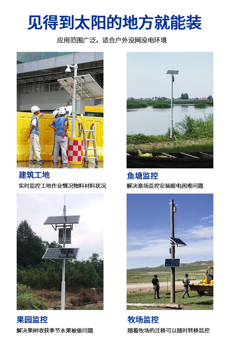 1、 完全离线方案,太阳能供电,4G信号传输,施工便捷、大大节省了施工工程量和施工周期