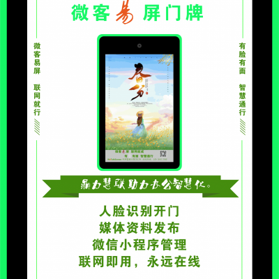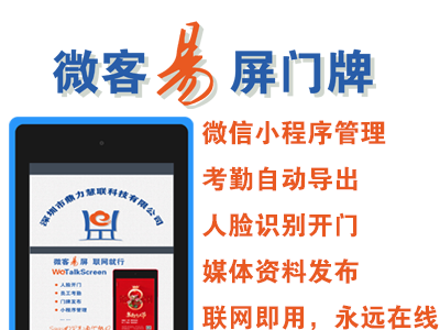 微客易屏门牌助力企业智慧办公.帮助企业降低信息化建设成本,提高工作效率!