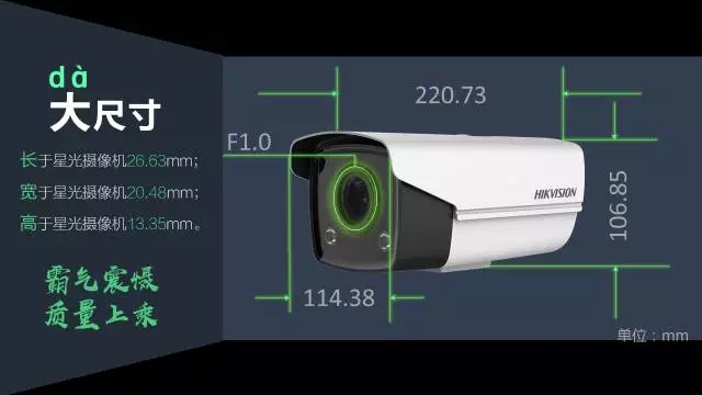采用F1.0的大光圈,通光量高于星光摄像机2.56倍(翻倍提升),即光圈值越小,光圈越大,通光量越大,图像越亮。