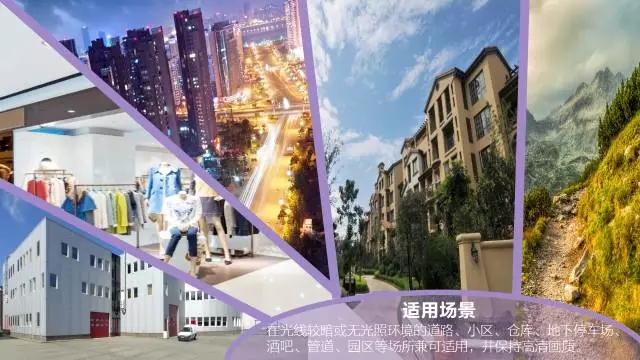 在光线较暗或无光照环境的道路、小区、仓库、地下停车场、酒吧、管道、园区等场所兼可适用,并保持高清画质。