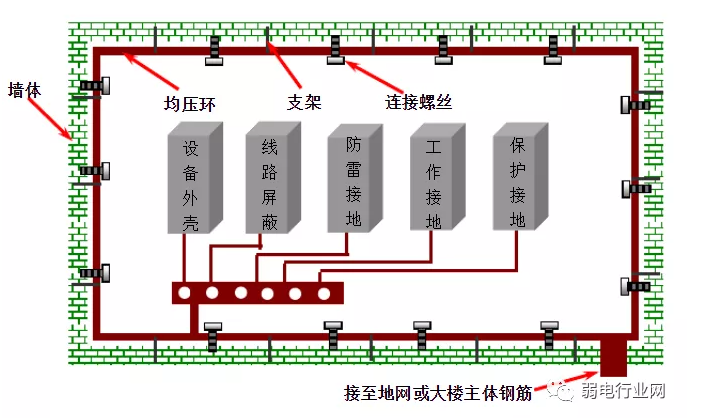 2、等电位连接的目的,在于减小需要防雷的空间内各金属部件和各系统之间的电位差。防止雷电反击。应将机房内的主机金属外壳,UPS及电池箱金属外壳、金属地板框架、金属门框架、设施管路、电缆桥架、铝合金窗等金属和弱电设备全部进行等电位连接,并以最短的线路连到最近的等电位连接带或在其它已做了等电位连接的金属物上,且各导电物之间的尽量附加多次相互连接。