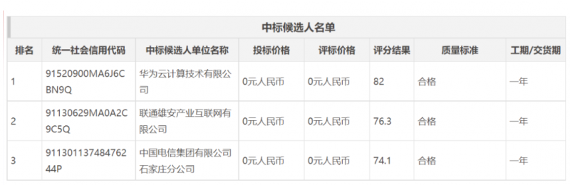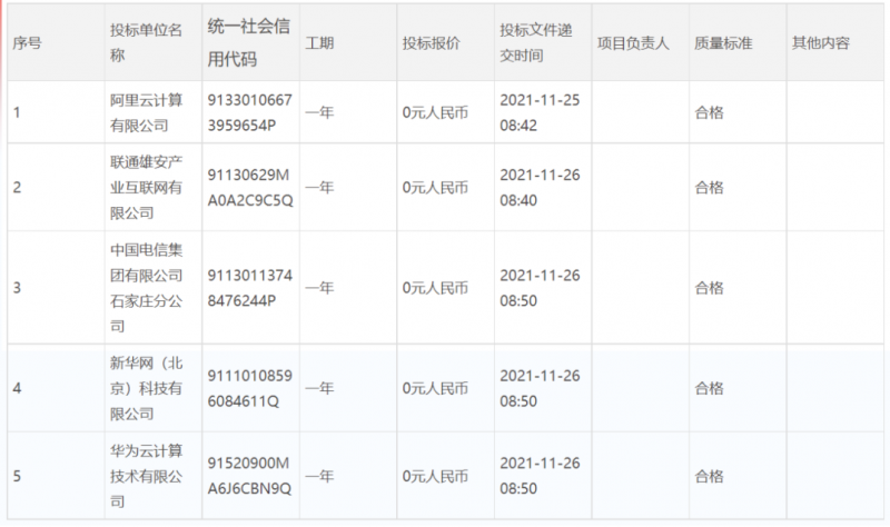 11月26日,石家庄北国电子商务有限公司公有云服务采购项目中标候选人公示: