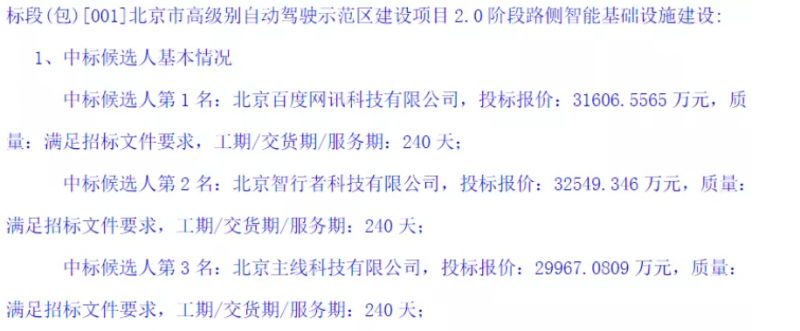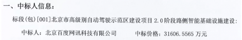 12月13日,北京车网科技发展有限公司北京市高级别自动驾驶示范区建设项目2.0阶段路侧智能基础设施建设中标结果公示,中标供应商 :北京百度网讯科技有限公司,中标金额:31606.5565万元。项目名称:北京市高级别自动驾驶示范区建设项目2.0阶段路侧智能基础设施建设北京市委市政府决定,以北京经济技术开发区全域为核心,建设全球首个网联云控高级别自动驾驶示范区,通过统筹车路云网图各类资源进行融合试验,打通网联云控式自动驾驶的关键环节,形成城市级工程试验平台,以“车路协同”理念加速L4及以上高级别自动驾驶的实现。基于示范区1.0阶段建设成果与经验,示范区2.0阶段将重点实施“扩路、强云、组网、联车、落图”五大专项建设任务,按照“多杆合一”和“多感合一”原则,持续推动智能化基础设施建设,加快车载智能终端推广加装;完成云控平台建设和正式运营;完成覆盖经开区全域的双模网络体系建设支持北京市智能汽车基础地图应用试点并推动更多商业化应用场景的落地。最终实现接入千辆高级别自动驾驶车辆,服务万辆网联车辆目标,为推进首都治理体系和治理能力现代化发挥更大作用。1、中华人民共和国境内注册的法人,具备有关部门颁发的有效期内的智能网联汽车道路测试临时行驶车号牌或测试通知书,并具有与本招标项目相应的供货能力;