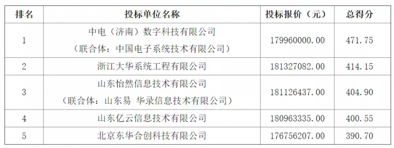 中标供应商 :中电(济南)数字科技有限公司(联合体:中国电子系统技术有限公司)
