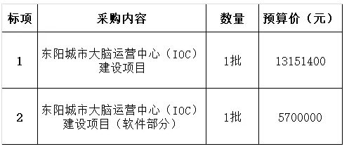 项目名称8:金华市东阳城市大脑运营中心(IOC)预算金额:1885.14万元采购需求:东阳市城市大脑运营中心位于“东阳市人民政府大