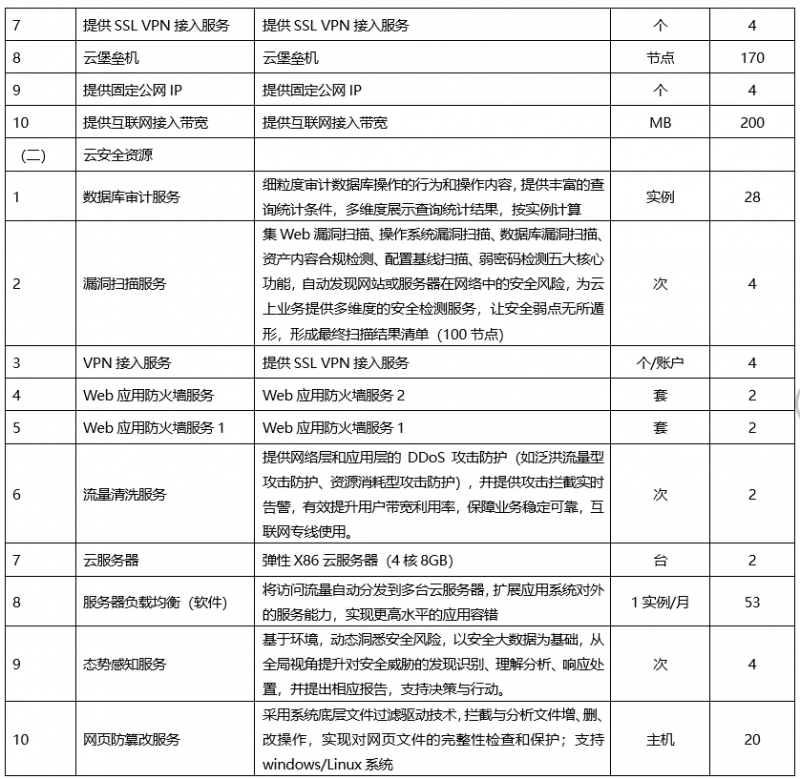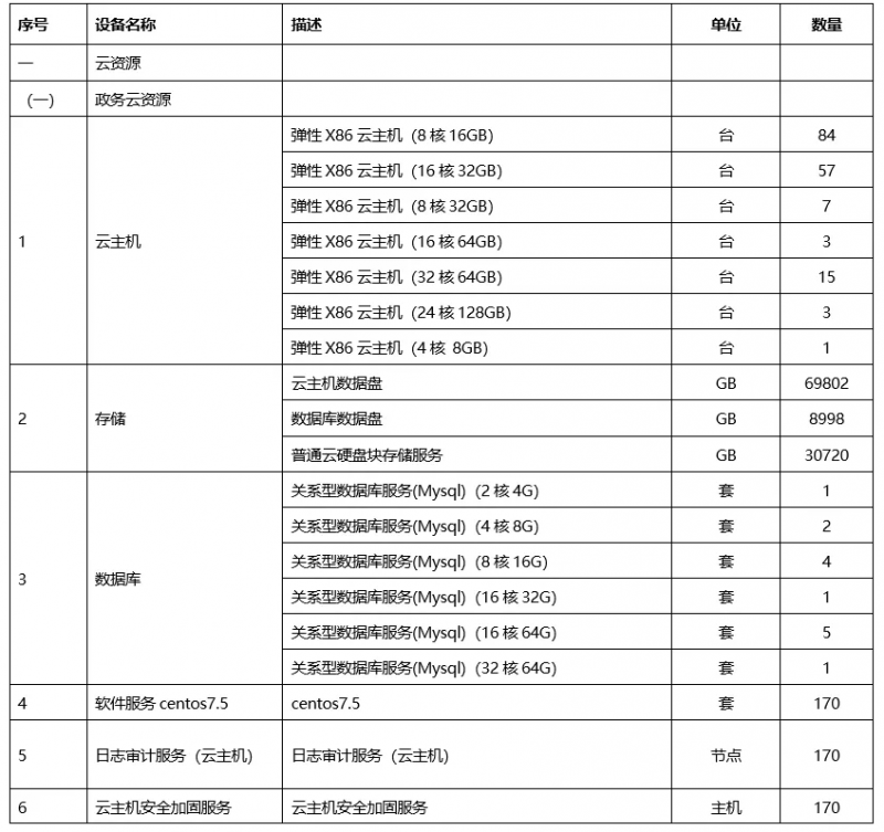 政务云资源及云安全资源租用: