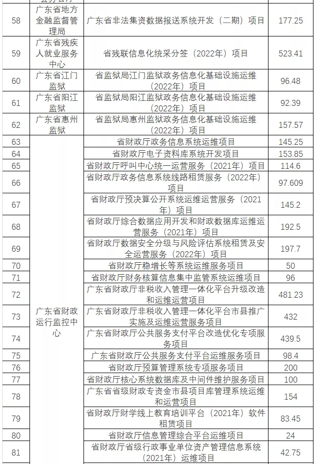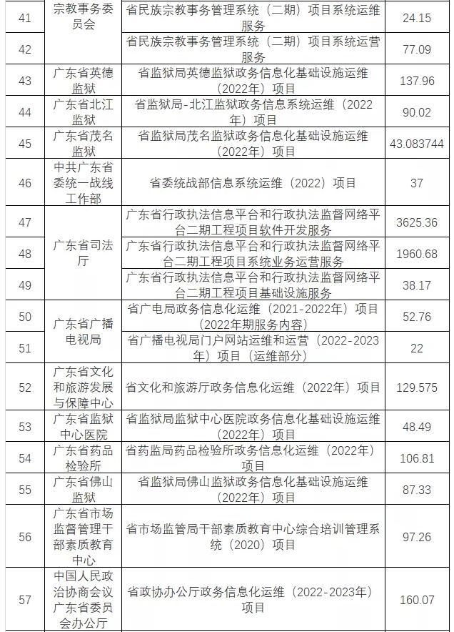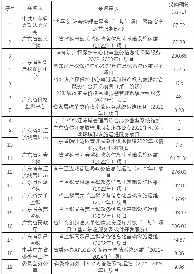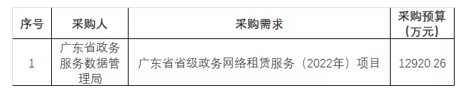 2月17日,广东省省级政务信息化(2022年第一批)项目公开招标公告发布,项目预算金额:152297.3276万元。
